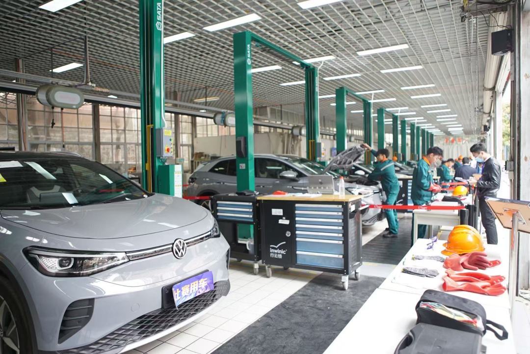 广州市交通运输职业学校新能源汽车运用与维修专业学生在实训。