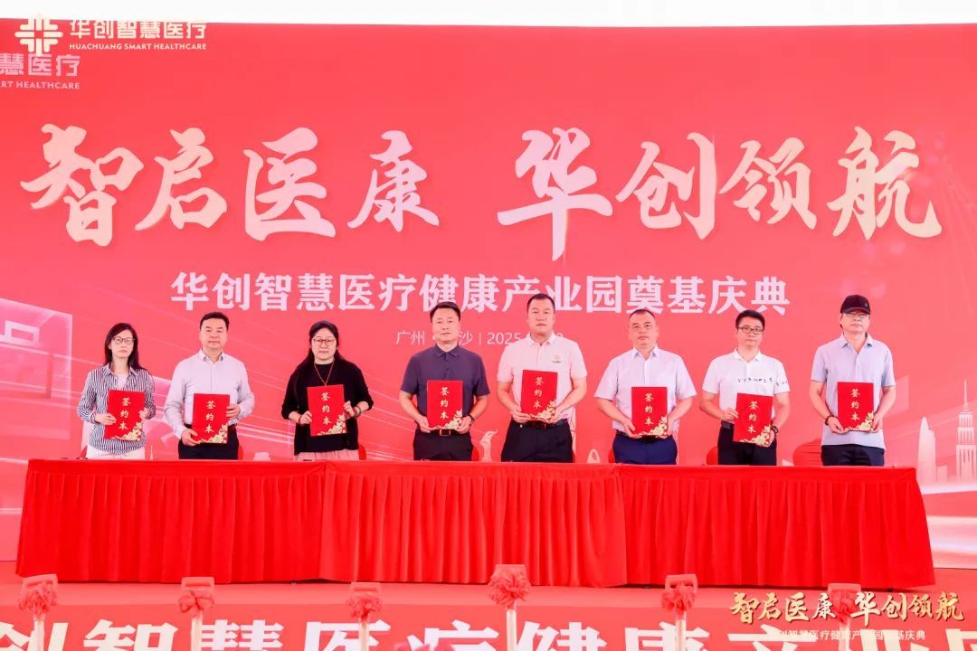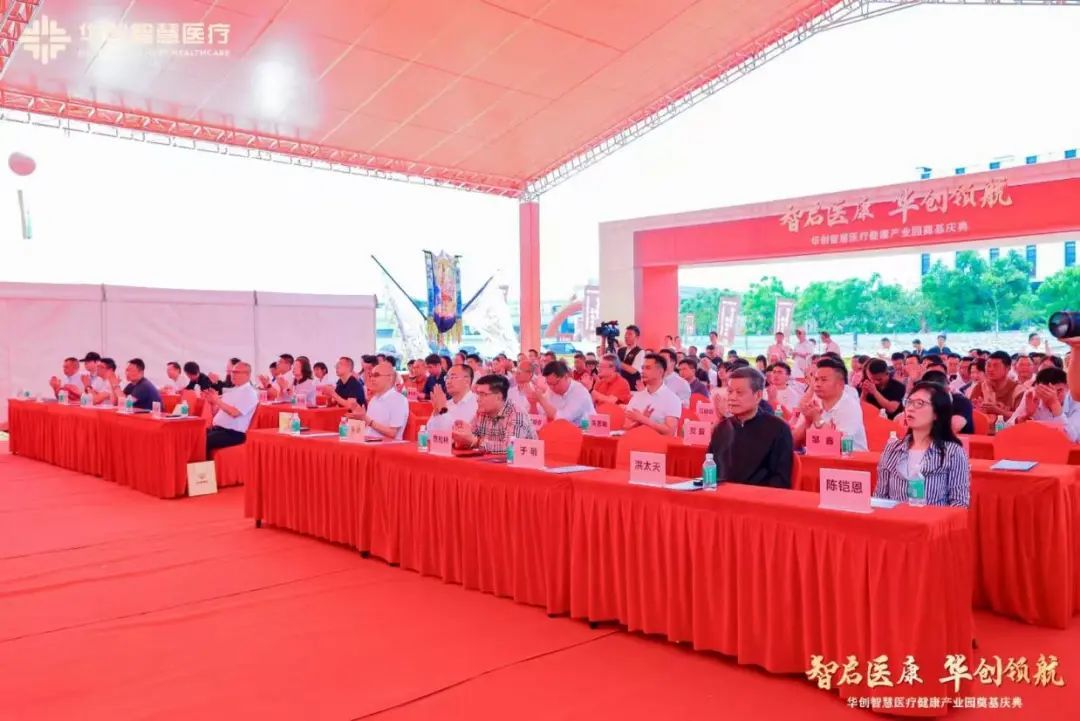 奠基仪式上,华创集团与广东九州通医药有限公司、智远奈米生物科技(台湾)有限公司、华夏本草控股有限公司、广州市八方智联健康产业科技有限公司、中食科技集团、西安吉上吉养生文化管理有限公司、上海日金金生物科技有限公司代表现场签订进驻意向协议。