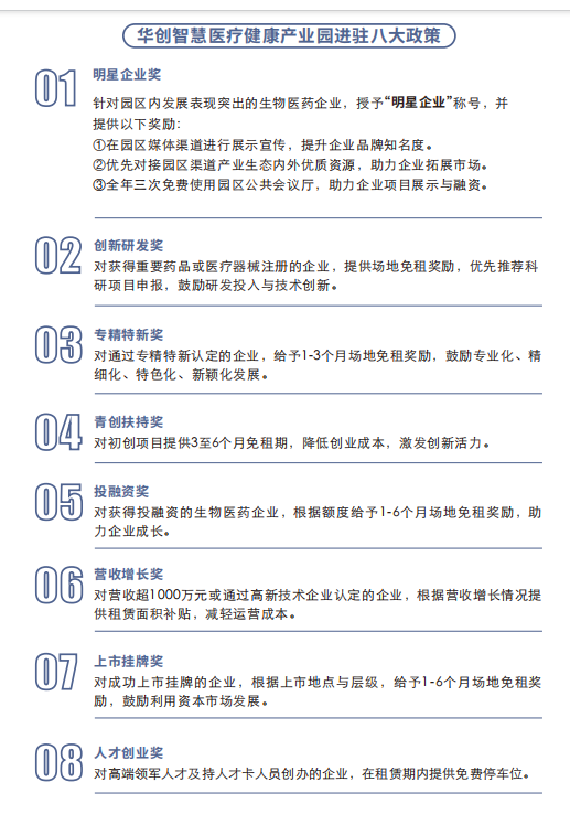 华创集团相关负责人介绍,园区将重点引进生物医药、智慧医疗、高端医疗器械等领域的创新型企业,要求企业具备核心技术研发能力或产业链协同能力,符合粤港澳大湾区医疗健康产业规划方向。优先支持拥有自主知识产权、符合GMP/GSP标准的生产型企业,以及具备数字化解决方案能力的智慧医疗服务机构入驻。