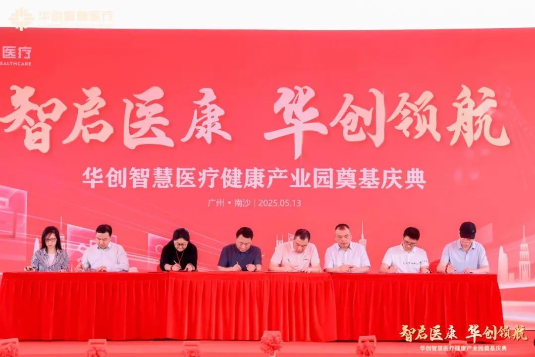 礼炮鸣响,锣鼓喧闹,2025年5月13日,广州市南沙区横沥镇迎来历史性时刻——华创智慧医疗健康产业园奠基开工,南沙区、横沥镇政府有关领导,广东华创安全器械医疗健康产业有限公司(下称“华创集团”)、签约企业代表百余人出席见证。作为南沙生物谷的核心载体,这一标杆项目,将承载起南沙打造“国家级生物医药创新高地”的雄心,更以“三擎驱动”的智慧生态,为大湾区医疗健康产业升级注入澎湃动能。