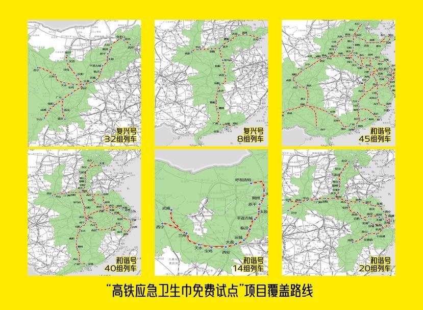 近日,国内部分高铁列车组迎来卫生服务升级,全国累计150组高铁动车开展“高铁应急卫生巾免费试点”项目,为有需求的女性乘客提供免费独立包装卫生巾,并同步提供卫生巾售卖服务。