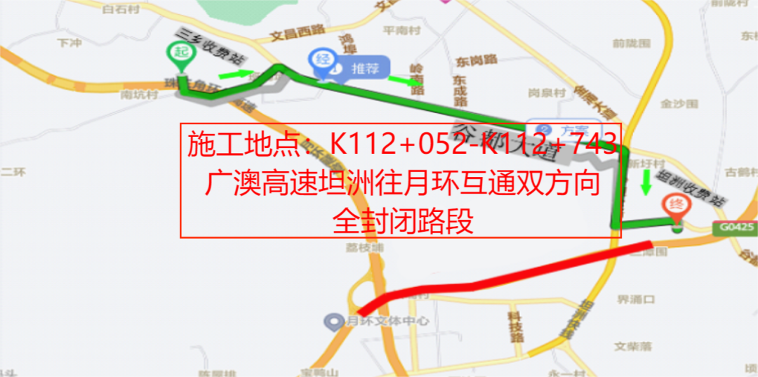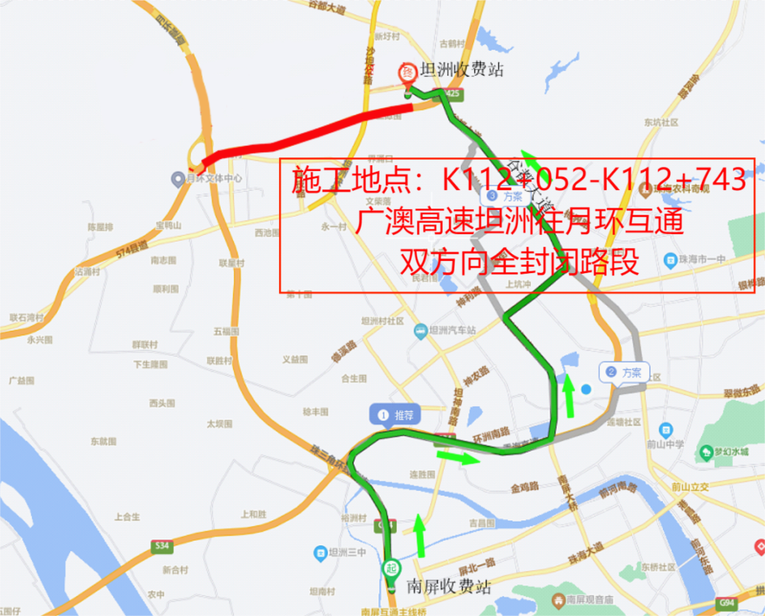 南屏往坦洲方向车辆绕行图