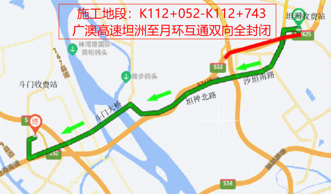斗门往坦洲方向(东行)车辆绕行图