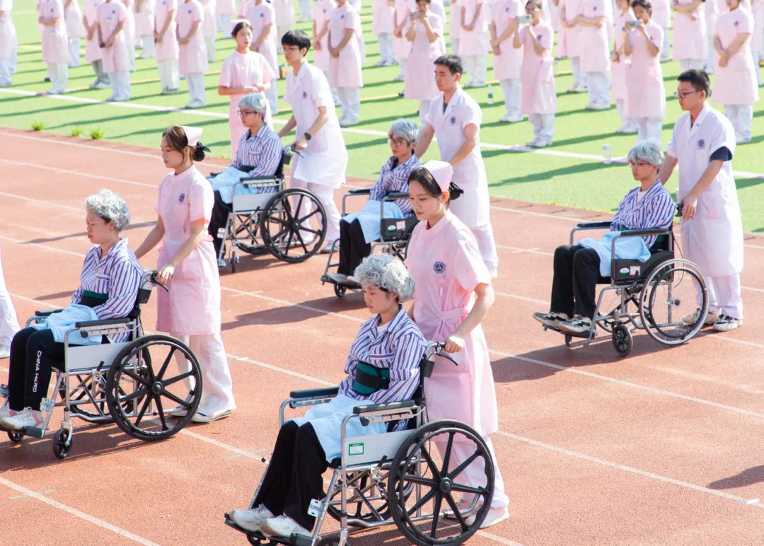 随后,在学生技能展示环节,护理服装秀、内科护理技能、外科护理技能、儿科护理技能、急症重症护理技能、养老护理技能、护理礼仪展示陆续上演,学生们用标准化、规范化的专业动作,彰显守护生命的责任与担当。
