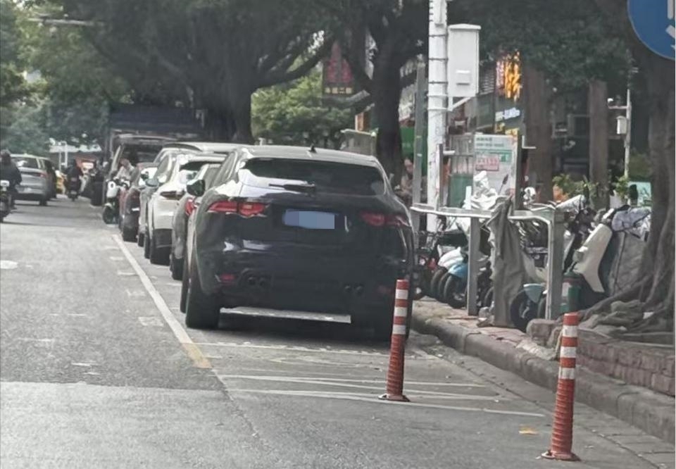 如果遇到机动车倒车停进咪表泊车位时,更是险象环生,造成单车道堵车不说,本来就在机动车道行驶的电动车,为了避让倒车的车辆,直接驶入了对向车道,电动车的车速在此期间并未减慢。