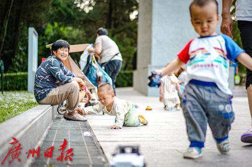 黄花岗公园,不少市民来此遛娃。