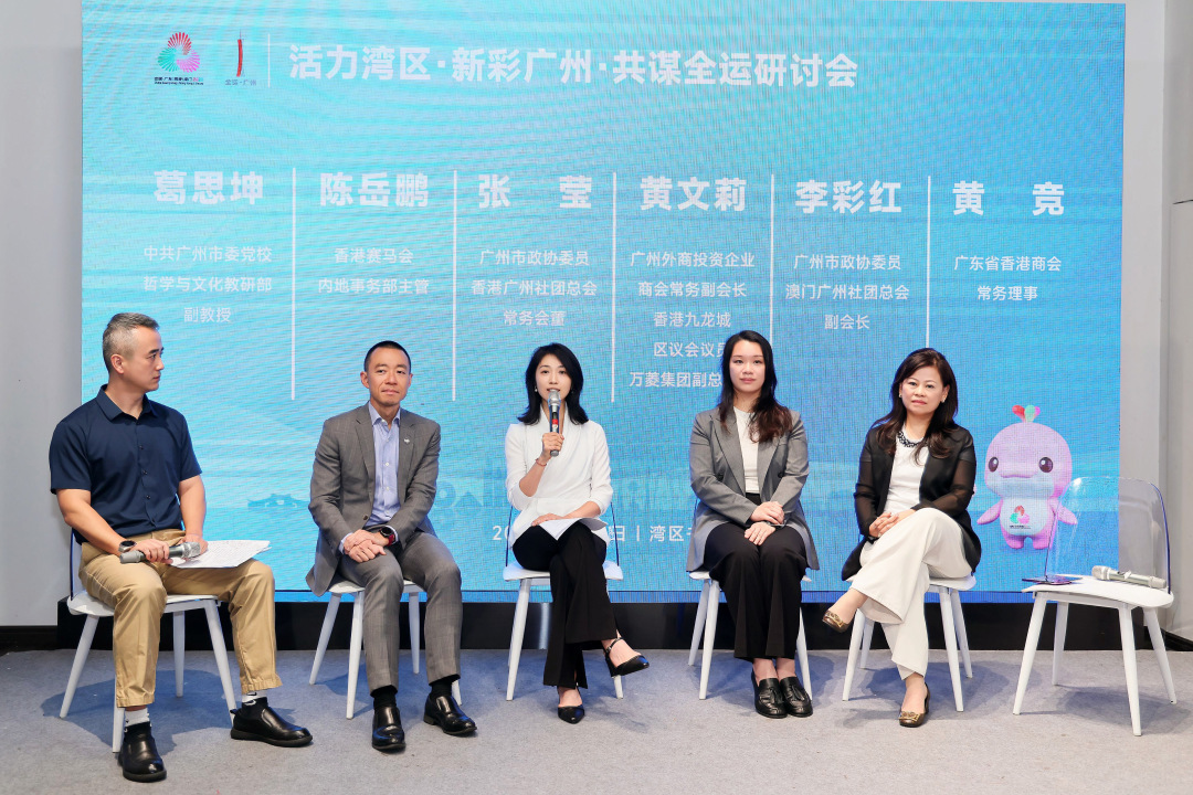 顾问献策环节由市委党校哲学与文化教研部副教授葛思坤主持。香港赛马会内地事务部主管陈岳鹏、广州外商投资企业常务副会长黄文莉等特聘顾问与香港广州社团总会常务会董张莹、澳门广州社团总会副会长李彩红等特聘顾问单位代表立足自身发展领域,结合港澳经验,就赛事组织、文旅融合等方面提出建议。
