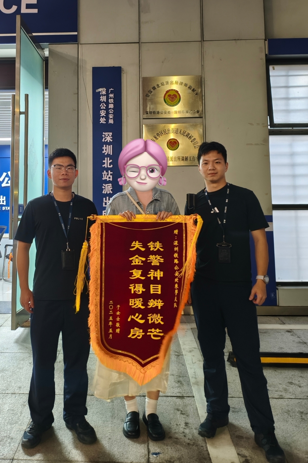 近日,一面印有“铁警神目辩微芒 失金复得暖心房”的锦旗送到了深圳铁路公安处乘警支队民警的手中。在这面锦旗背后,是旅客余女士对深铁乘警48小时内破获案件的高度认可。