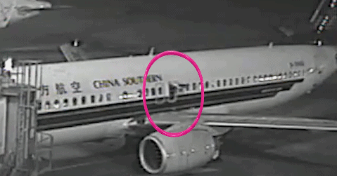 此事发生于飞机落地后,从一段客舱内拍摄的画面中可以看到,位于客舱中部的安全门(应急舱门)被打开。