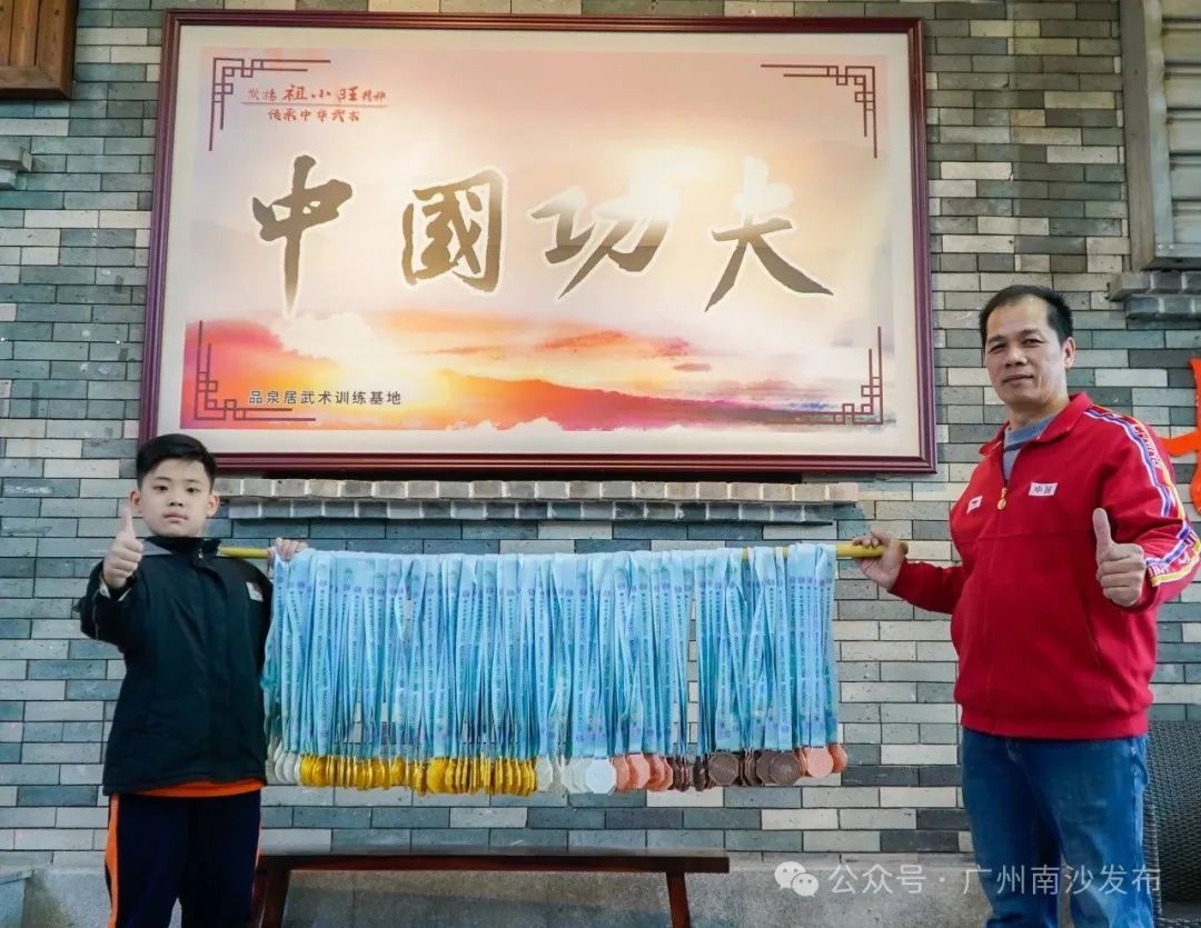 去年12月,在2024国际咏春拳大赛中,东涌镇武术龙狮会在单项赛中斩获35个第一名、31个第二名、14个第三名,在少年组集体咏春拳项目中夺得第二名,奖牌多到挂满两条两米长的六点半棍的视频火爆社交平台。