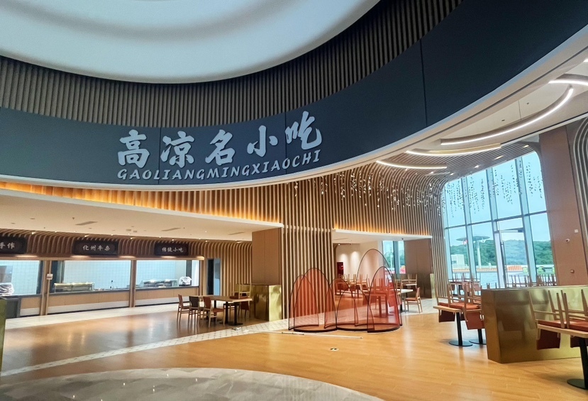 除了灯光,更让人亮眼的是柏桥服务区的业态布局。除满足日常的高速公路服务区功能外,服务区紧扣“荔枝之乡”基因,将文化体验融入每个角落。西区二楼打造了非遗书屋、数字艺术馆、手作馆等主题展馆,高州木偶戏、化州跳花棚等非遗技艺通过数字艺术馆、手作工坊动态呈现。馆内还设有潘茂名中医药文化区、镇江陶瓷体验区、电白沉香手作区等,旅客可亲身体验制作流程,感受茂名传统文化的独特魅力。