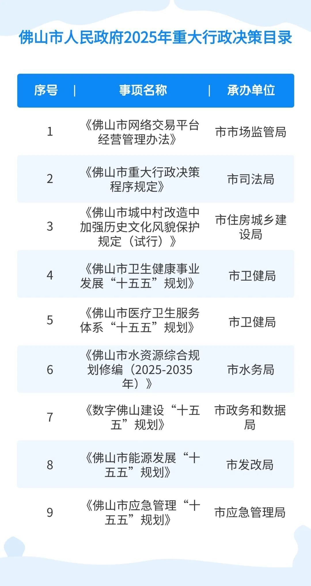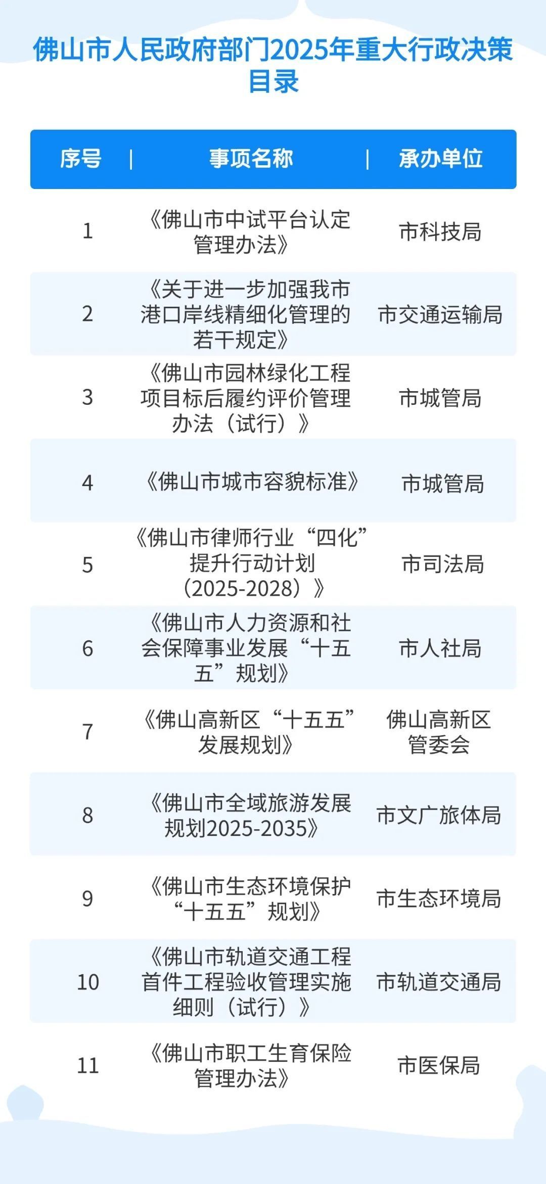 5月13日晚,佛山市司法局对外通报,由佛山市司法局收集、审查、编制的《佛山市人民政府2025年重大行政决策目录》,近日经佛山市委、市政府同意,以佛山市政府办公室名义公布;《佛山市人民政府部门2025年重大行政决策目录》以佛山市司法局名义同步公布。