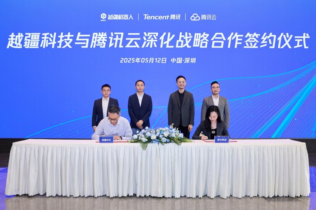 5月12日,深圳市越疆科技股份有限公司与腾讯云计算(北京)有限责任公司签署深化战略合作协议。