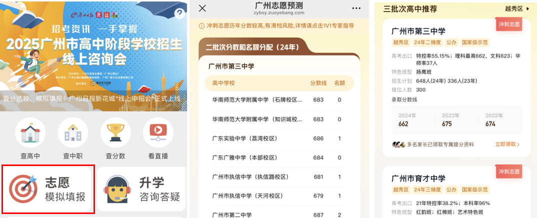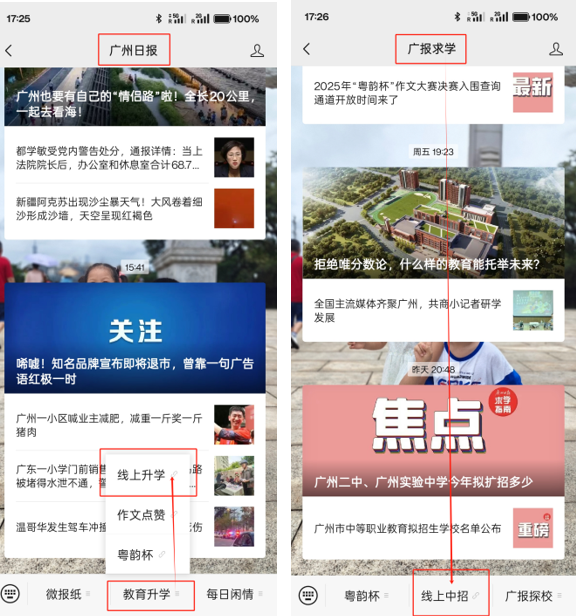 微信公众号:关注“广州日报”或“广报求学”,菜单栏“教育升学”直达。