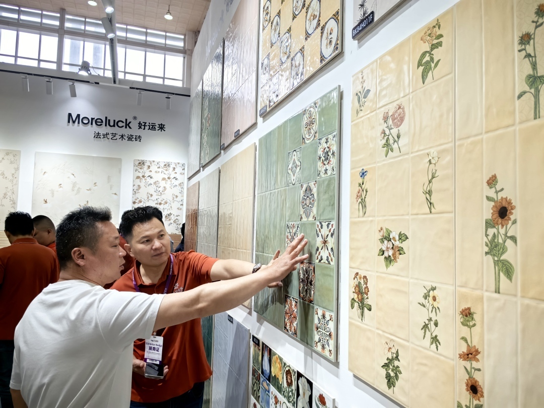 上个月(4月18—23日),在第42届中国(佛山)国际陶瓷及卫浴博览交易会上,“中式美学”成为中国陶瓷出圈的流量密码。箭牌瓷砖展出的宋境系列从宋代十二美学中汲取灵感,提炼出淡、柔、和、简、雅五大特色;卡布奇诺瓷砖用水墨画重构仿古砖的东方美学;佛山欧神诺瓷砖的展位上摆列着中国玉“山石沁”“花木染”系列新产品;慕瓷陶瓷以佛山本土非遗元素的香云纱为灵感创作“锦系列”,并推出以宋代汝窑冰裂纹为特色的“汝韵系列”。