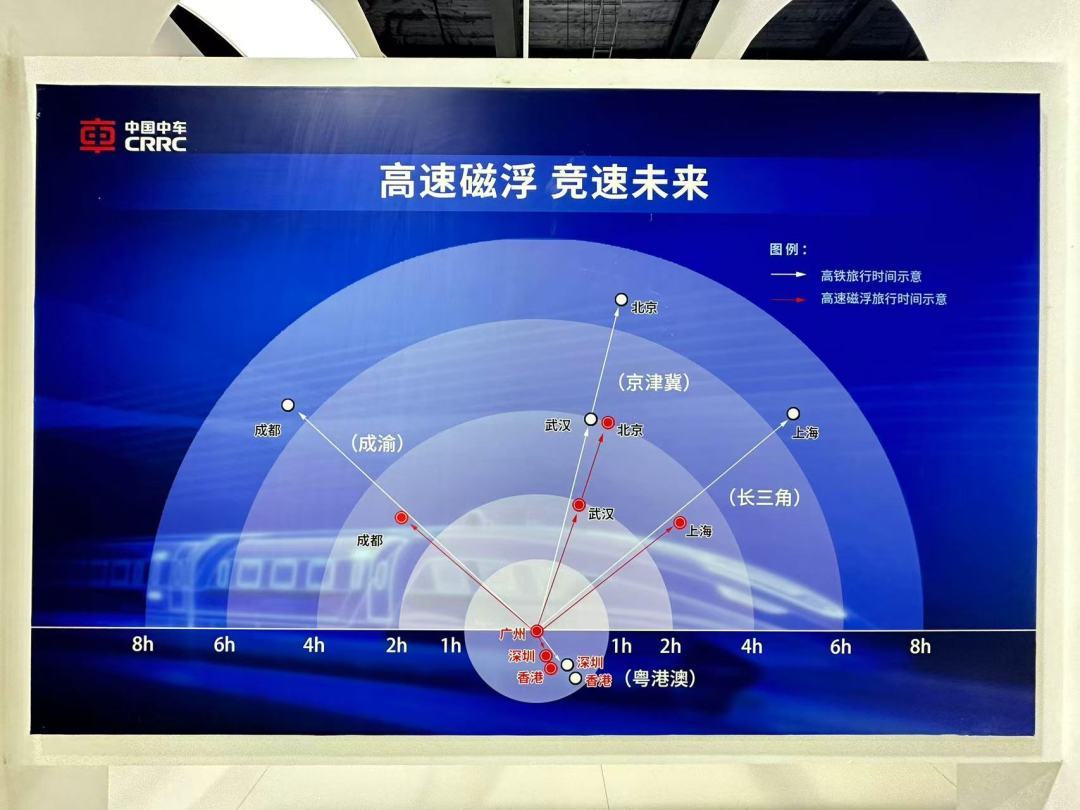 广州日报新花城记者从展会现场了解到,中国中车集团正在研发的高速磁浮列车,时速可以达到600公里。将来如果从广州出发,搭乘高速磁浮列车出行,有望两小时抵达武汉、四小时抵达北京,前往上海、成都的时间大约需要三小时,比目前的高铁旅行时间可缩短一半。
