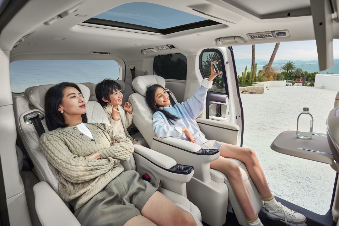通过新能源专属平台,两款新车实现超高得房率,二三排共轨设计支持座椅超长滑动及靠背多角度调节,第三排腿部空间达980mm,配合三排蝶式座椅与双层上车脚踏,打破“第三排鸡肋”的痛点。此外,全车标配前排双15.6英寸超高清屏、二排17.3英寸娱乐大屏及后排独立双小桌板,实现“全员影音自由”。