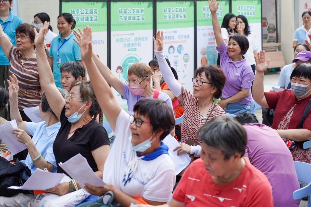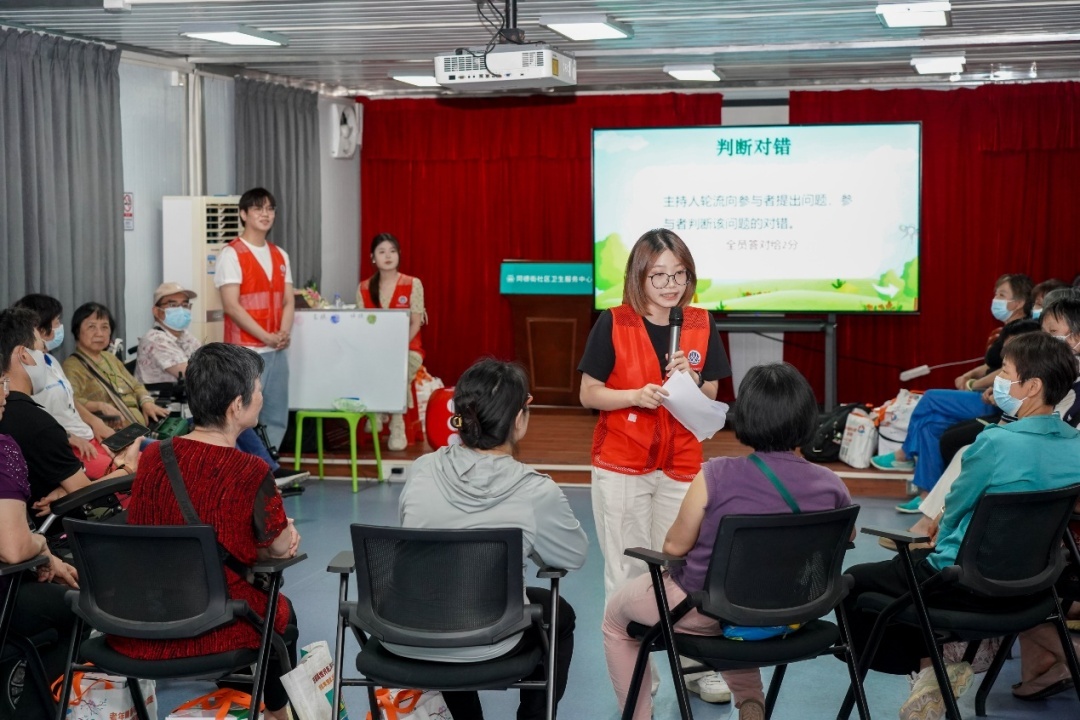 活动中,同德街社区卫生服务中心中西医主治医师、白云区星级家庭医生黎三妹社卫医疗团队开启趣味科普互动。每听到提问,醒目的街坊们马上抬头“做功课”,在宣传栏快速寻找答案,积极抢答并拿到心仪的礼品。通过有奖问答,居民们更好地知晓国家基本公共卫生服务项目,黎三妹鼓励大家结合健康需求,主动前往就近的社区卫生服务中心咨询、免费享受相关服务。