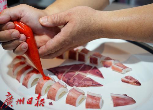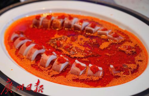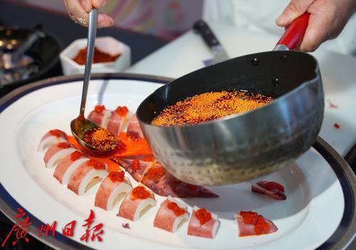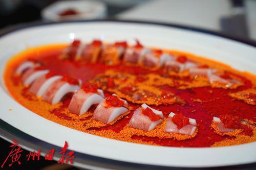两地大厨更联手创作"穗心所渝"主题融合菜——“同舟共技”红油海钓鱿鱼。以粤式清鲜中和巴渝热辣,用创新烹饪语言诠释体育竞技"和而不同"的交流理念。