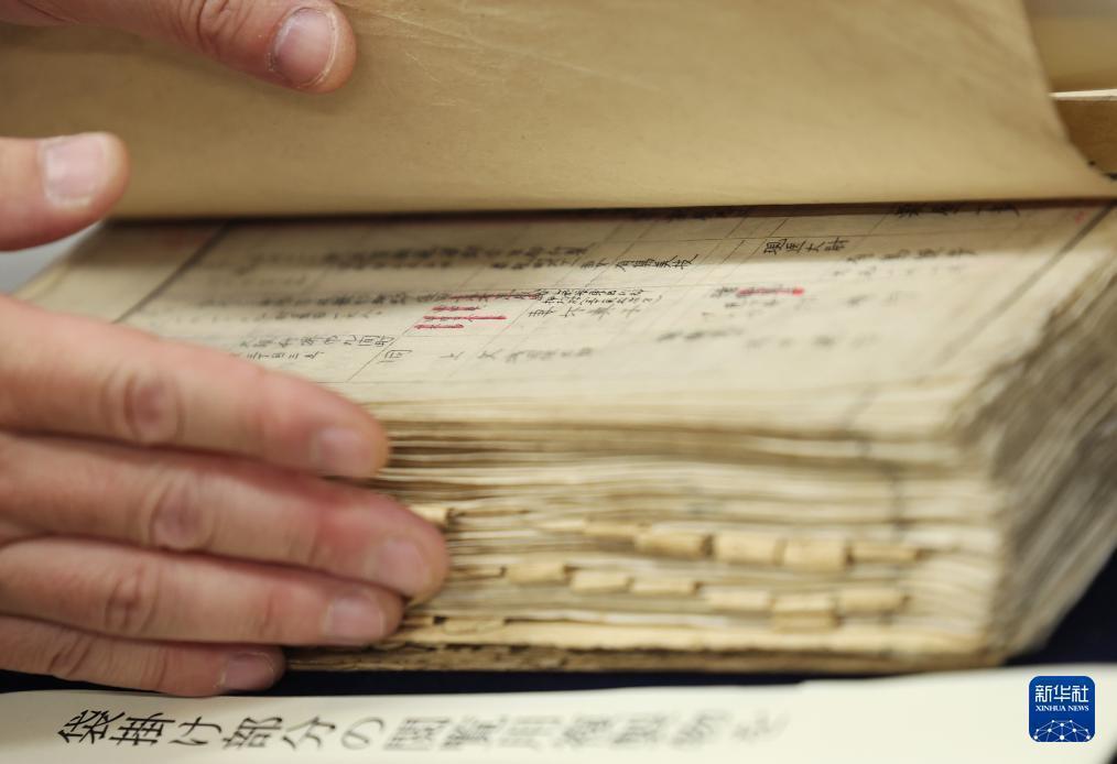 5月14日,在位于日本东京的日本国立公文书馆,工作人员展示侵华日军细菌战部队1644部队的留守名簿。日本国立公文书馆14日公开展示侵华日军细菌战部队1644部队、8604部队和8609部队的留守名簿。新华社记者 贾浩成 摄