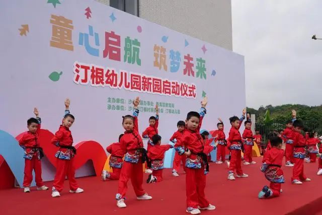 一群萌娃以朝气蓬勃的武术表演拉开了活动的序幕。随后,醒狮点睛表演精彩登场,并由与会嘉宾携手点亮“梦想之窗”灯塔,象征幼儿园正式启航。大家实地参观了新园区,对现代化教学环境和科学布局给予高度评价。