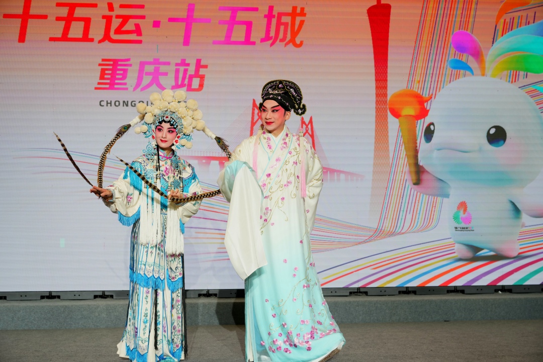 “这是我首次来到重庆舞台上进行粤剧表演,这次两大剧种同台演出,体现了穗渝两地文化的交流交融,也反映了两地海纳百川、开放包容、积极向上的精神。”广州粤剧团团长、一级演员陈健超表示,“十五运会不仅是体育盛会,还是文化纽带,希望更多人了解我们的粤剧文化、广府文化。”