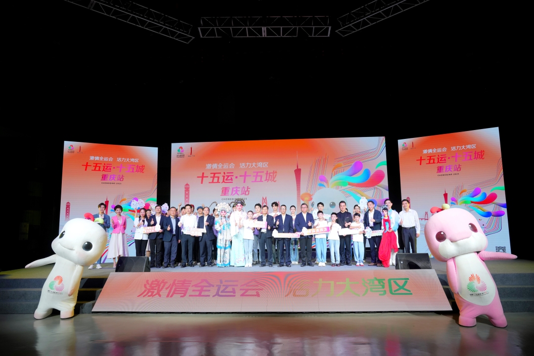 “我们带着广州的热忱与担当,在巴渝大地播撒运动火种,传递十五运的无限精彩……”活动现场,粤港澳志愿者携手重庆志愿者倾情演绎《十五运·广州见》互动节目,以青春之名发出全运会热情邀约,传递“全民全运”理念。
