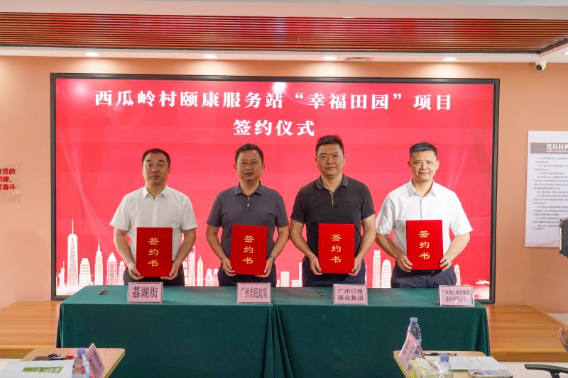 帮扶单位代表认真了解西瓜岭村和颐康服务站发展建设情况,并实地参观“幸福田园”项目。活动现场,广州市民政局、广州珠江钢琴集团股份有限公司、广州日报报业集团(广州日报社)与荔湖街共同签订西瓜岭村颐康服务站“幸福田园”项目合作意向书。根据合作协议,组团帮扶单位将利用帮扶资金、资源优势等方面,助力西瓜岭村颐康服务站打造成一个集田园休闲、社交和红色文化传承于一体的综合性服务平台。当天活动中,广州市花都区阳光助困公益促进会向荔湖街捐赠了10台自动体外除颤器(AED),为社区健康安全提供保障。