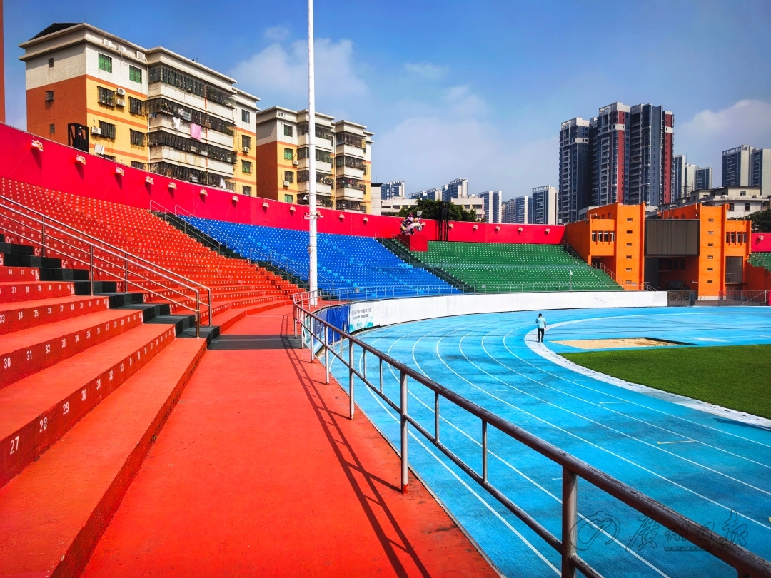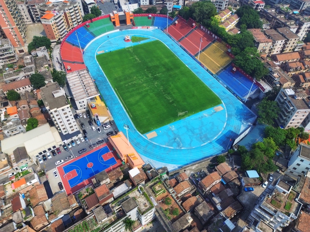 藏身于百年骑楼和竹筒屋群中的云秀山体育场,正静静等待全运之门开启。走进体育场,场内一个硕大的狮头装置连同观众席上的数个小狮头点缀着场地。这座始建于20世纪五六十年代的万人体育场,去年刚以146万人次入场、43亿流量的“西甲”神话出圈,如今在经过改造后,只需更换广告KT板、微调灯光便能切换“全运模式”。