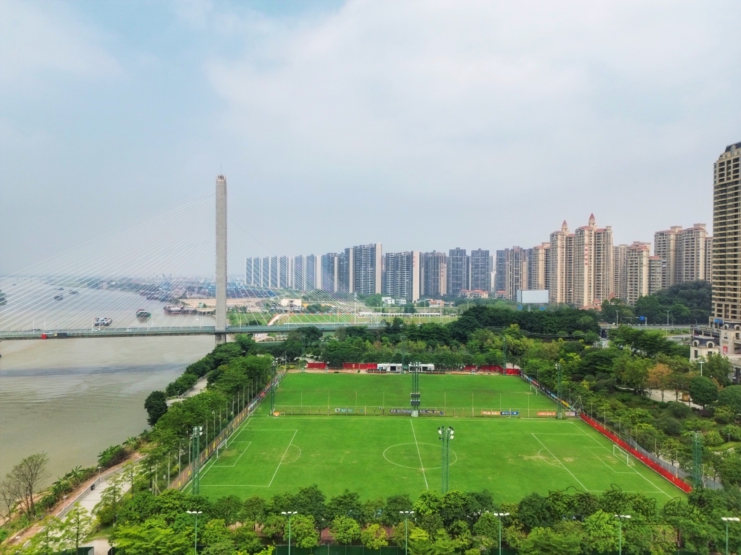 三水大桥底,4块FIFA标准11人制天然草场如同绿色棋盘,诉说着三水足球的辉煌。黄贤海告诉记者,三水健力宝青训中心每年定期承办包括中国足协、广东省足协在内的各级足球赛事,24年以来已接待职业集训球队超150支。今年1月17日,健力宝足球青训中心暨阿森纳(中国)足球发展中心揭牌成立,结合本土资源与阿森纳的国际经验,共同打造集“校园普及、精英选材、先进训练、规划赛事、推荐留学”于一体的青训体系,目前已启动全国青训海选工作。