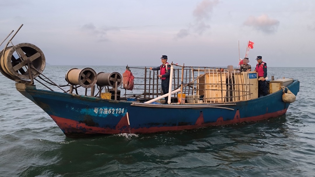 5月5日凌晨3时,江门海警局接群众报警称在下川岛附近海域发现有疑似非法捕捞的渔船在活动。接警后,江门海警局迅速派遣执法艇赶赴目标海域展开查缉行动。锁定目标船只后,执法员立即表明身份并要求其停船接受检查。