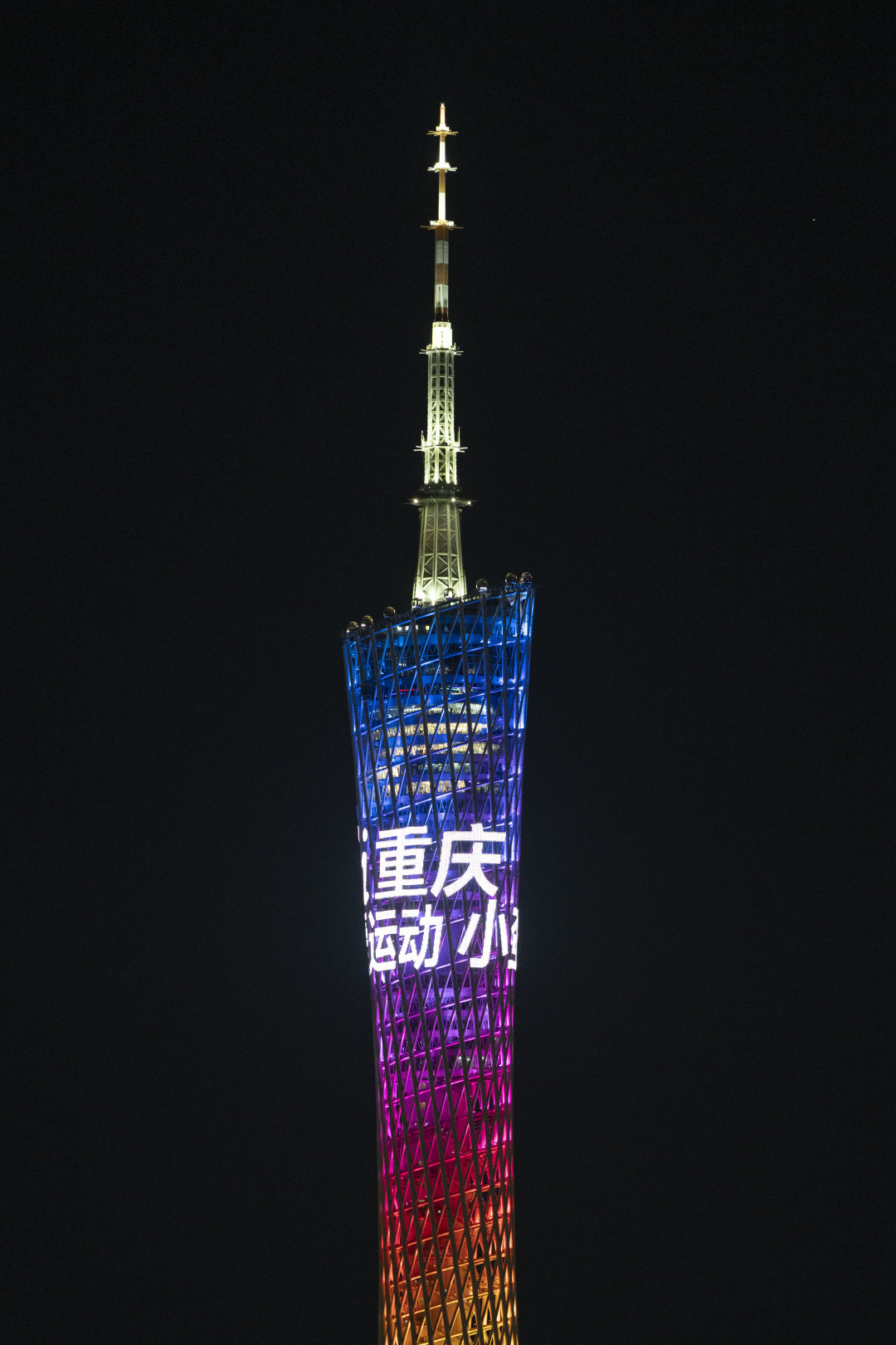 5月15日晚,广州塔亮灯播出“Hi 重庆 爱运动 小蛮腰”,为“十五运·十五城”重庆站活动助力。
