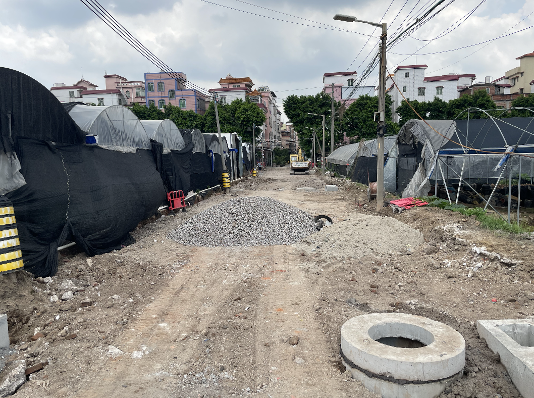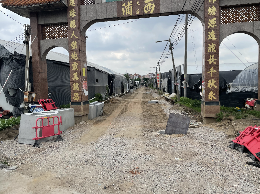 位于荔湾区海龙街道西浦牌坊对出的村路正在进行升级改造,过往车辆及行人请注意!