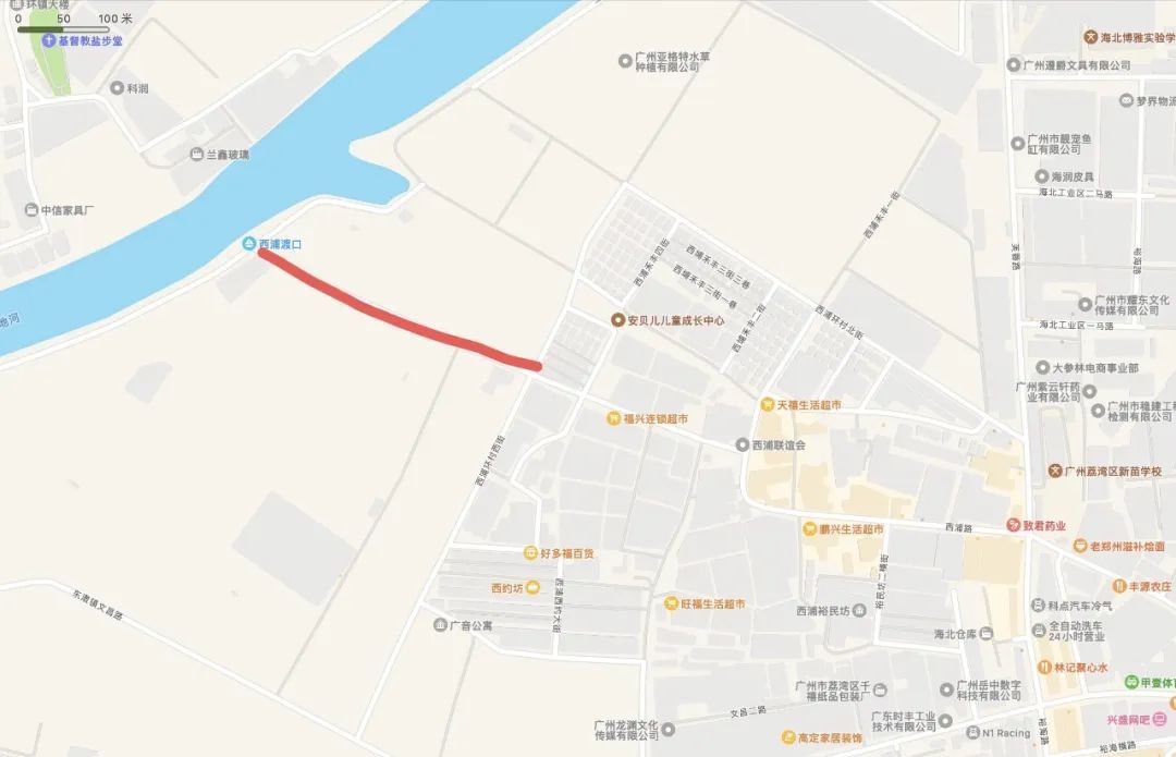 红线处为施工路段