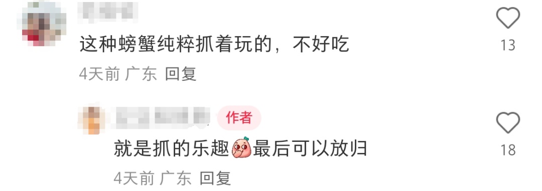 贴文下有不少网友留言提醒这类螃蟹不能吃,还有人留言倡导保护生态。