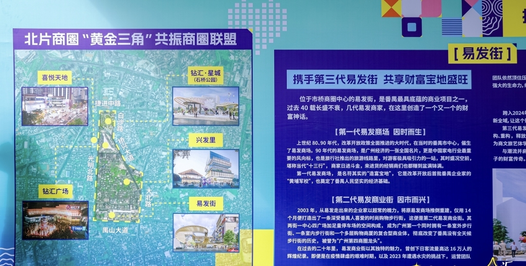市桥北片商圈的升级以“黄金三角”为核心引擎——新钻汇将构建“珠宝+美食+潮玩”生态圈、第三代易发街升级改造为文商旅艺体学共融的消费和文化体验目的地、兴发里规划打造“古典与现代交融的开放式街区”,三核共振,相互赋能,共同构建市桥北片商圈“空间焕新、文化赋能、消费提质”的高质量发展新范式。