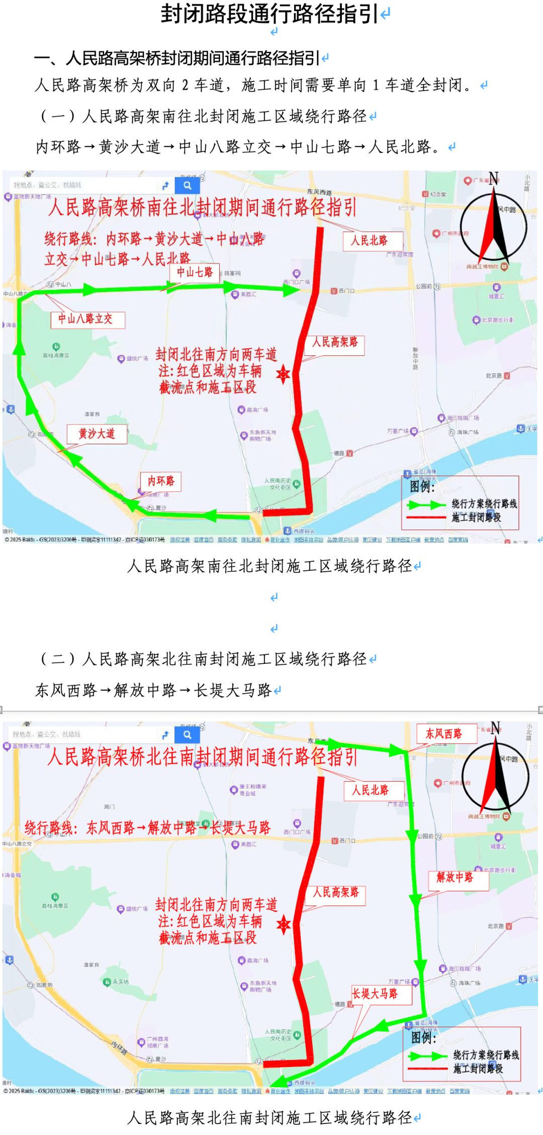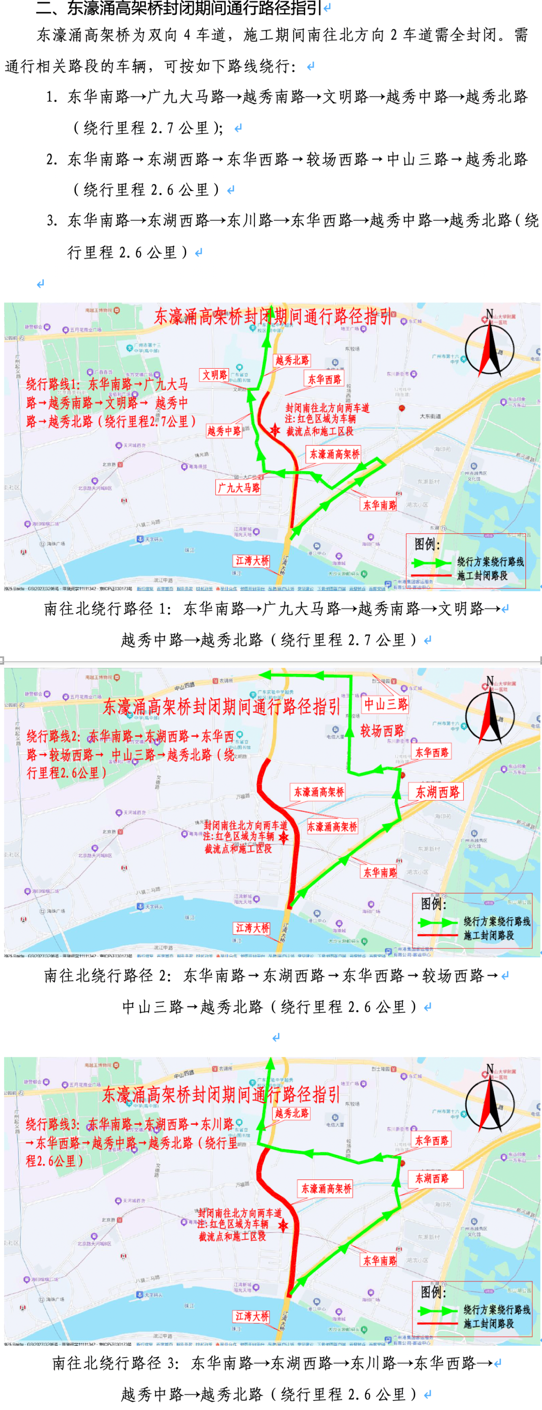 单向全幅封闭施工中,同泰路的白云大道北-同和路路段和大金钟路的广园路跨线桥-白云大道南路段的施工时间为5月17日至6月30日的当日22:00至次日6:00,东濠涌高架桥的沿江东路至东华西路段和人民路高架桥的主线全线及出入口匝道的施工时间为5月17日至6月10日的当日22:00至次日6:00。封闭路段请注意绕行。