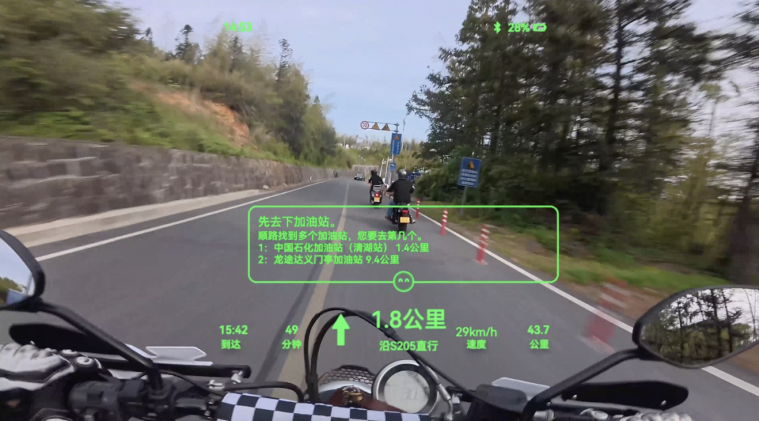 以骑行模式为例,如今借助Rokid Glasses,骑行者能够以“手不离车”、更适配动态场景的方式获取核心信息,体验“秒懂式”导航:例如,能提前知晓红绿灯信息,还能实时监测后方来车情况,保障骑行安全了;若骑行途中想顺路买奶茶,只需语音添加途径点,还能询问剩余到达时间;还能贴心推荐周围适合骑行的公园,并提供公园的阴凉覆盖情况以及不同高度坡度的路线信息,满足用户多样化的骑行需求。