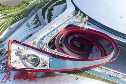 红色的德胜体育中心螺旋跑道十分艳丽夺目。