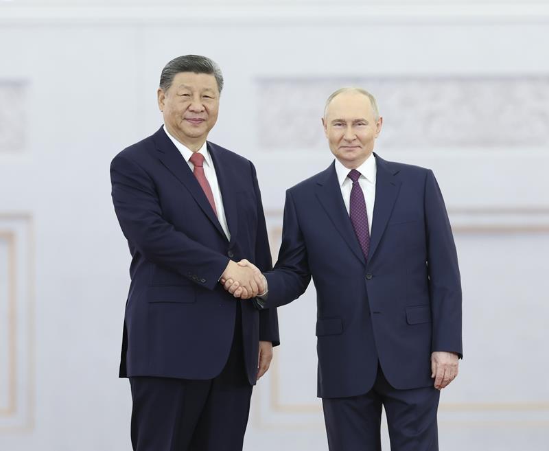 习近平主席在同普京总统共见记者时指出,面对变乱交织的国际形势,中俄两国要坚定秉持永久睦邻友好、全面战略协作、互利合作共赢精神,风雨同渡、关山共越,全面提升中俄关系的高度、维度、韧度,为世界和平和安全注入更多稳定性,为全球发展繁荣提供更强推动力。