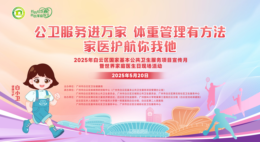 5月20日下午,2025年广州市白云区国家基本公共卫生服务项目宣传月暨世界家庭医生日现场活动将在黄石街江夏党群文化广场开幕。届时,世界冠军、白云名医教你科学减重,趣味运动会让你尽情燃脂,医院权威科室专家现场义诊……街坊朋友们快来参加活动,开心“享瘦”,共赢健康,还有品牌丰厚大奖等着你。