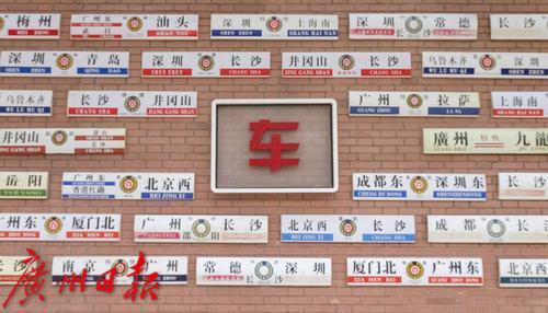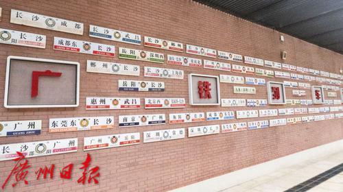 广州铁路博物馆列车方向牌展示墙铺满中国铁路广州局集团有限公司辖内从20世纪60年代至今共计210多块各区间、各车次的普速旅客列车方向牌。