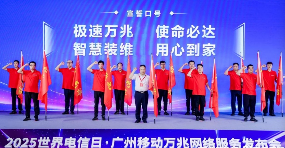作为连接技术与用户的重要桥梁,智慧家庭工程师团队成为另一焦点。中移铁通有限公司广州分公司总经理邵志良为工程师代表授予“万兆先锋”旗帜,工程师们集体宣誓:“极速万兆,使命必达!智慧装维,用心到家!”充分展现专业服务承诺。