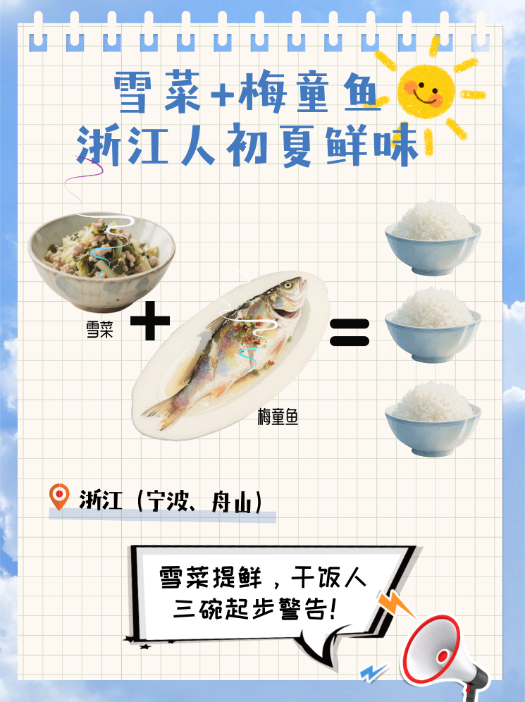 ◆浙江:宁波、舟山的雪菜炖梅童鱼则让游客品味初夏鲜味。