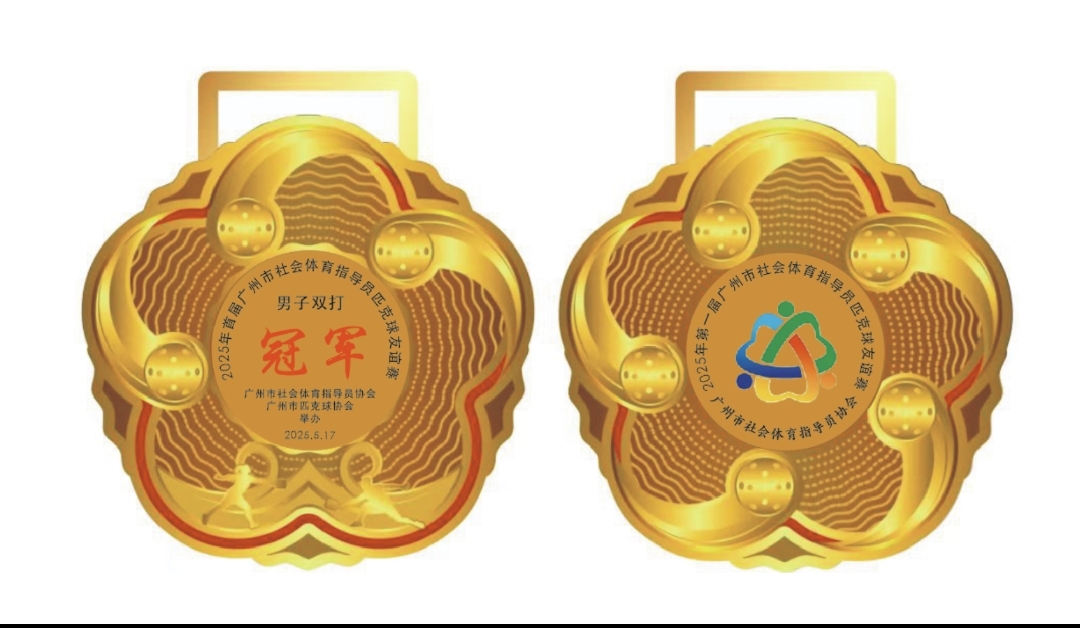 此外,本次赛事的奖牌是由中国当代书画艺术名家、广州市匹克球协会会长王庆民亲自设计。他的作品融合传统技法与现代审美,此次设计的奖牌融入了匹克球的元素,不仅是对赛事荣誉的承载,更传递了中国传统文化与新兴体育运动结合的独特魅力。