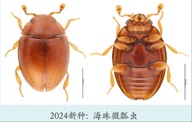 报告显示,2022-2024年,广东发表新物种333种,平均每三天发现一个!其中2022年发表新种111种,2023年发表新种107种,2024年发表新种115种,年均增长超百种。新物种涵盖植物53种、动物174种、微生物106种,其中,2024年新种包括海珠微瓢虫、东方红鸡油菌等特色物种,凸显生态本底与科研能力的“双轮驱动”。