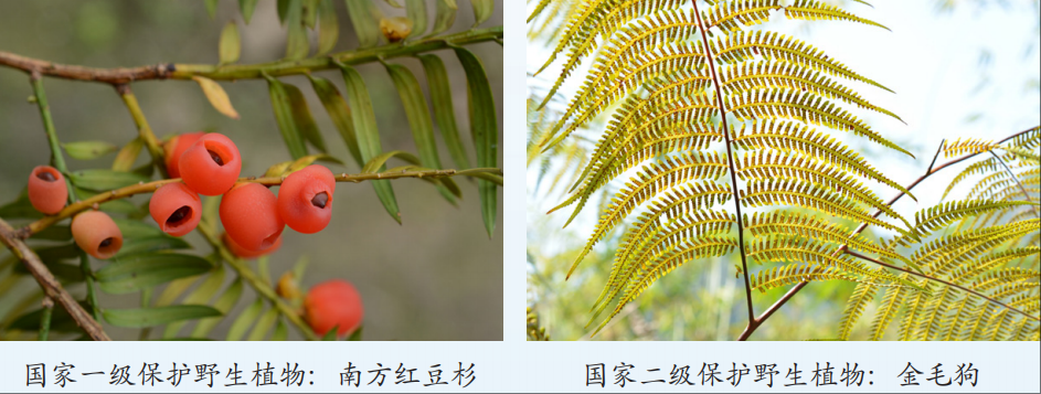 珍稀濒危物种方面,报告显示,广东省分布有国家重点保护野生植物176种,其中国家一级重点保护野生植物11种,隶属于8科8属,如仙湖苏铁、南方红豆杉和杜鹃山茶等;国家二级重点保护野生植物165种,隶属于55科85属,如深圳香英兰和博罗红豆。