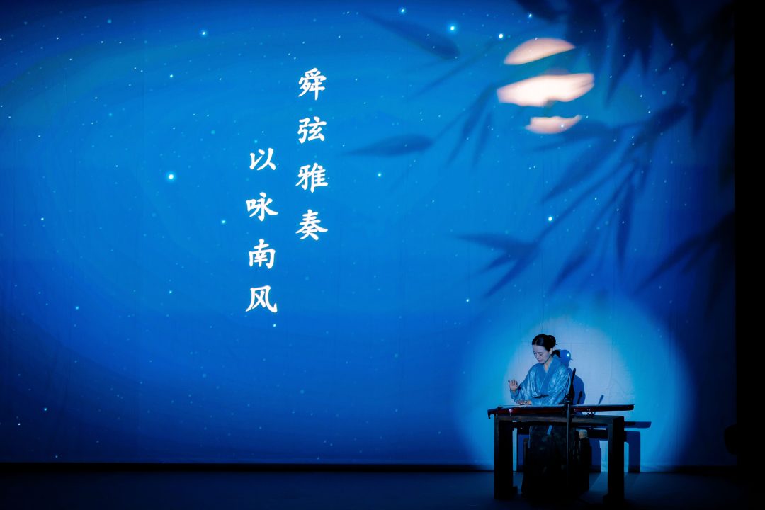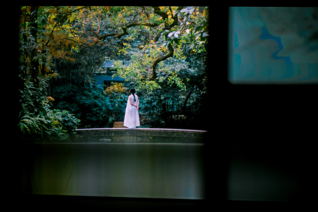 “风日水滨,清露未晞。薰风南来,荏苒在衣。南风吹竹,妙音希声。南有嘉木,奇花初胎。”当四言诗吟唱《有风自南》的音律还在剧场间袅绕时,《桨声艇影里的荔枝湾》已伴着艇仔粥的叫卖声、泮塘之上的阵阵荷香、珠江畔的水浪声,迅速打开观众的五感,构建出让人沉醉的时空蒙太奇。古琴曲《流水》的徐徐琴音尚未止息,与书同名的《广州事情》城市文学影像便带领观众跟随白衣少女区桃展开一场美妙的都市漫游。文字跳出纸页,以可观看、可聆听、可触摸的立体形式展现在观众面前。