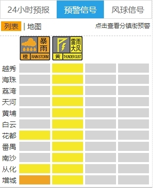 据市气象台监测,广州市达到启动气象灾害(雷雨大风)Ⅳ级应急响应标准。市气象灾害应急指挥部决定从18日13时27分起启动广州市气象灾害(雷雨大风)Ⅳ级应急响应。截止18日下午3时,广州11区雷雨大风黄色预警信号均已生效,增城区暴雨橙色预警信号生效。