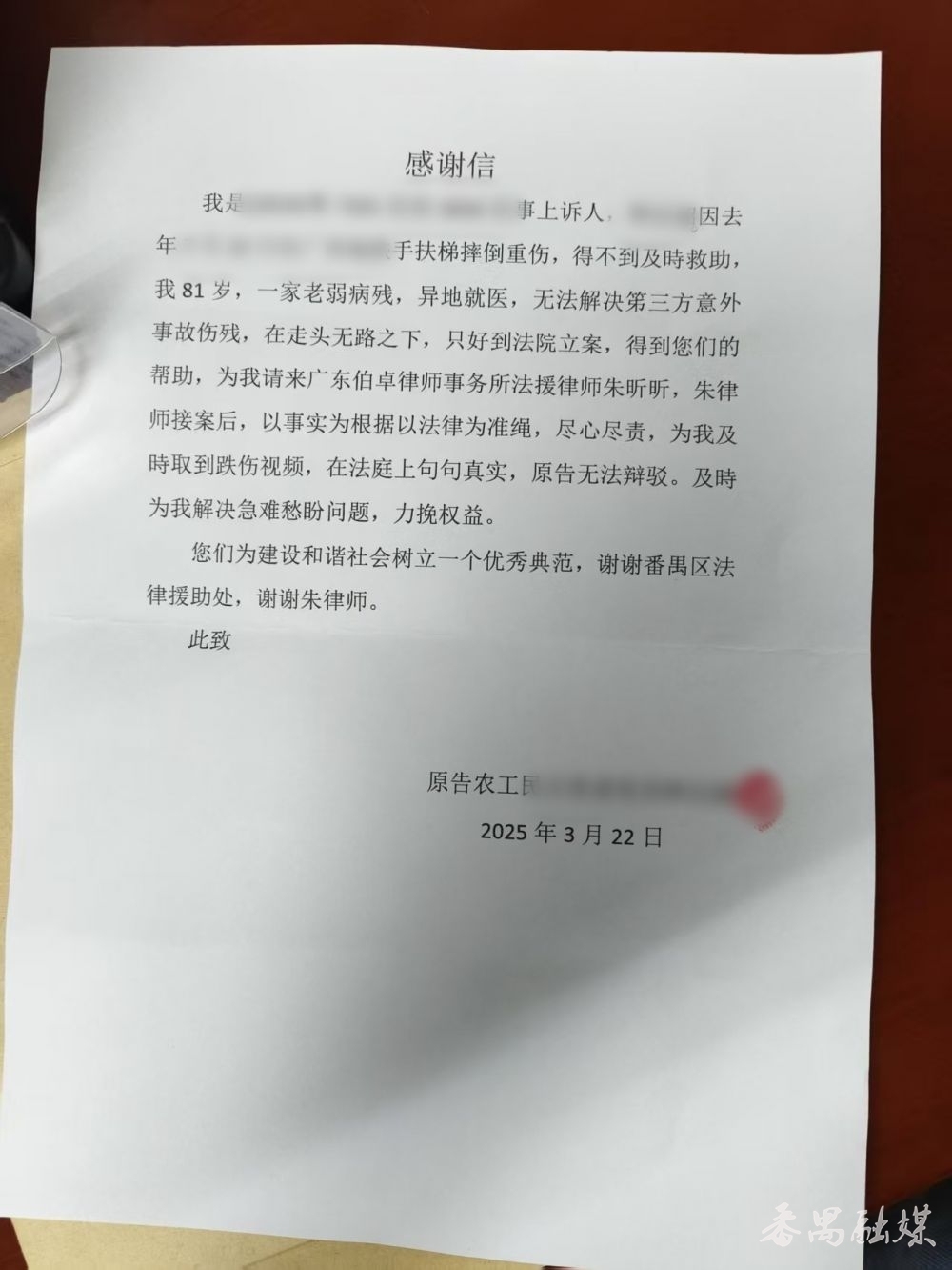 “陈律师不仅帮我们讨回了赔偿款,更让我们重拾了对生活的信心。”受援人陈先生的妻子在感谢信中写道。